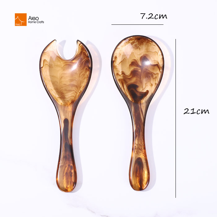 Aleo Home Modern Salad Server Set Colorful Resin Spoon Stir Tools Party Custom Kitchen Tools Measuring Fruits Vegetables Brown